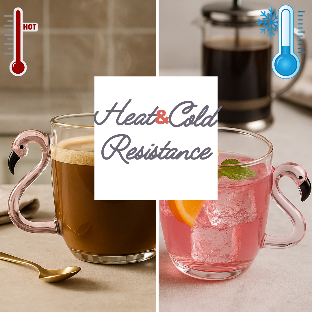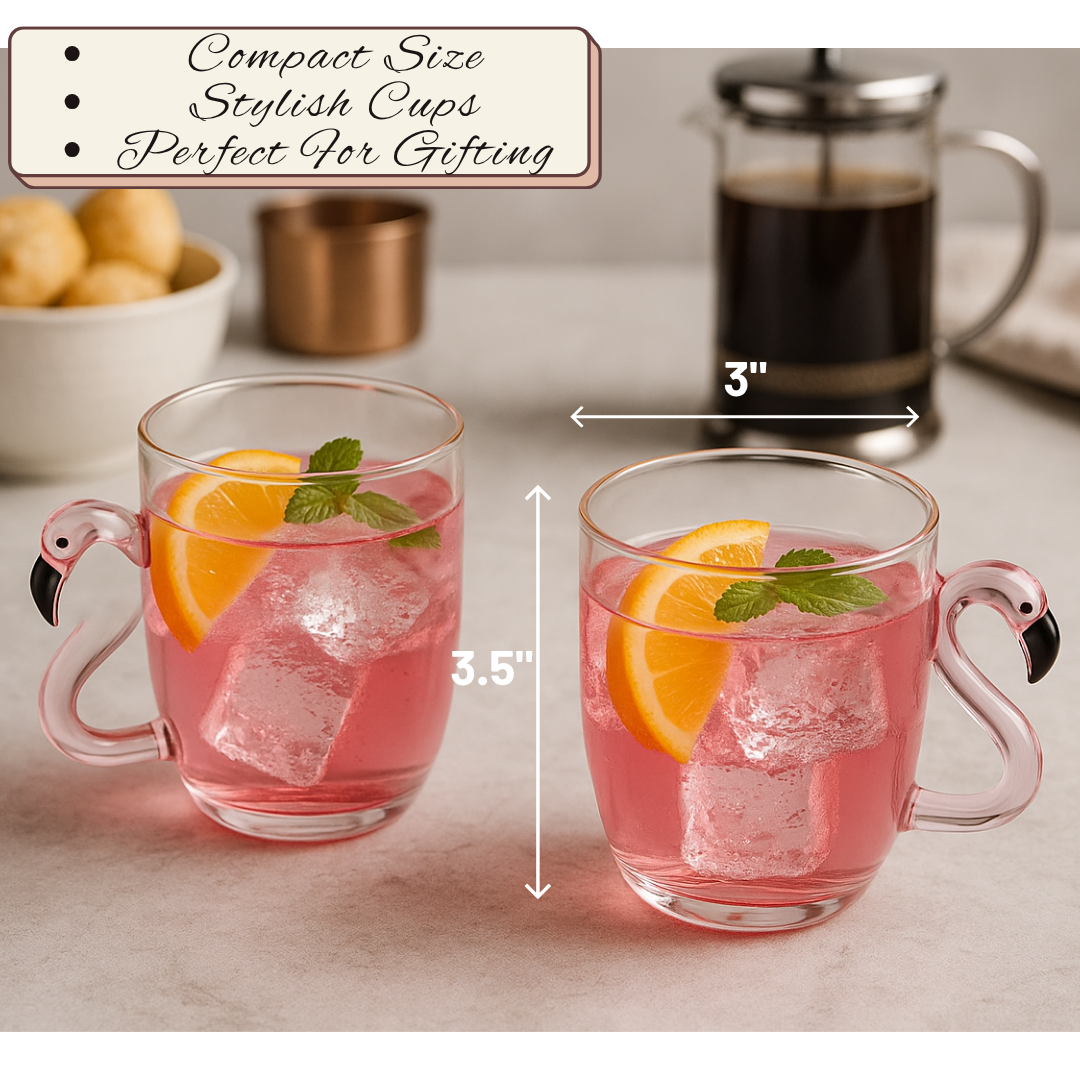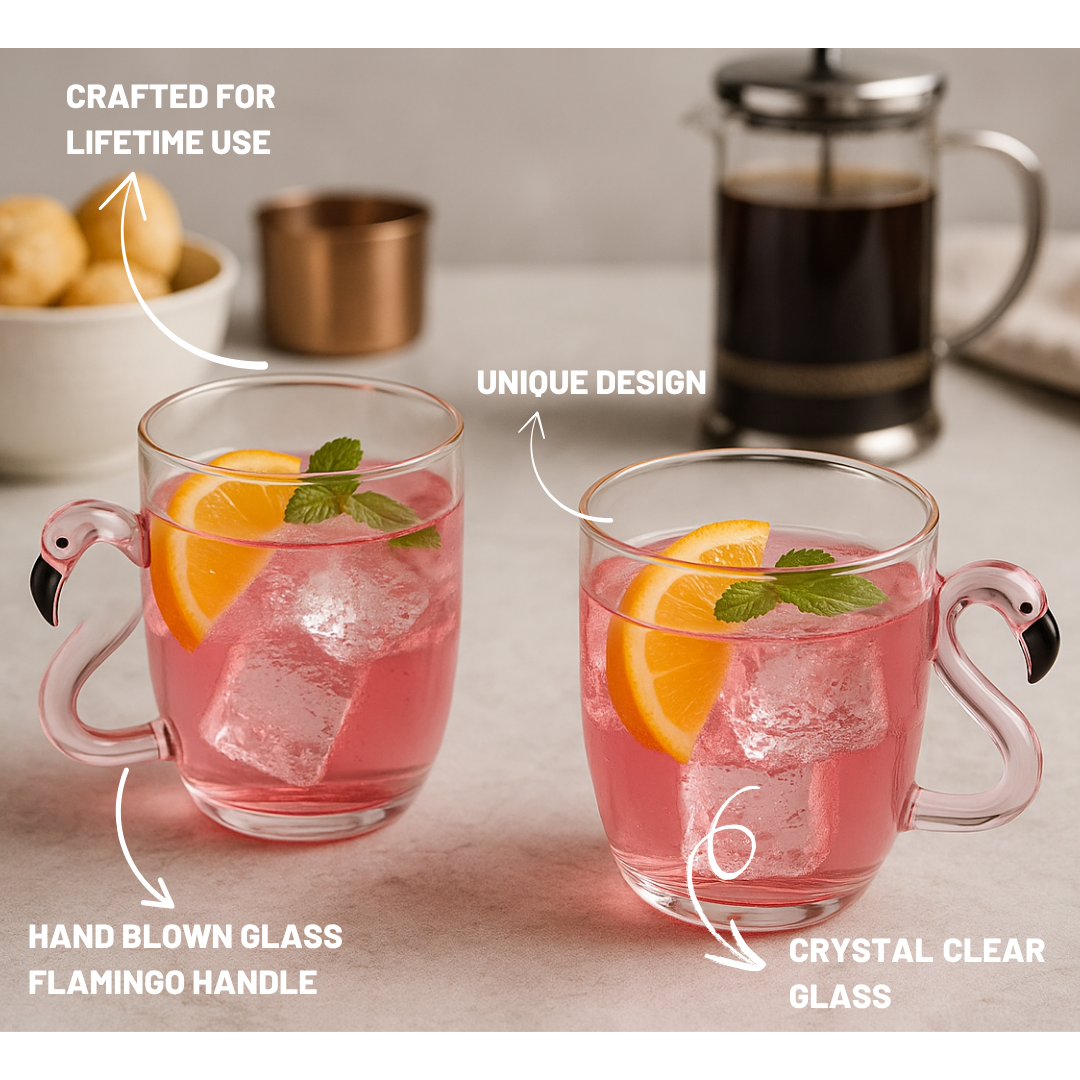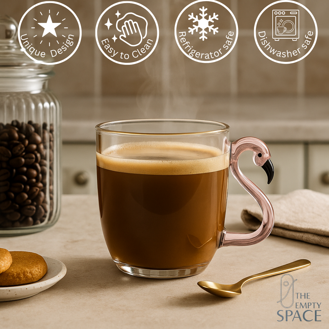 Crafted from premium borosilicate glass, this flamingo handle mug is designed to handle both hot and cold beverages with ease. The charming flamingo-shaped handle adds a fun, tropical touch while ensuring a comfortable grip. Lightweight yet durable, this 300 ml mug is ideal for tea, coffee, green tea, infused water, mocktails, or iced drinks. Its compact size makes it perfect for everyday use, gifting, or elevating your coffee nook with a playful yet refined aesthetic.